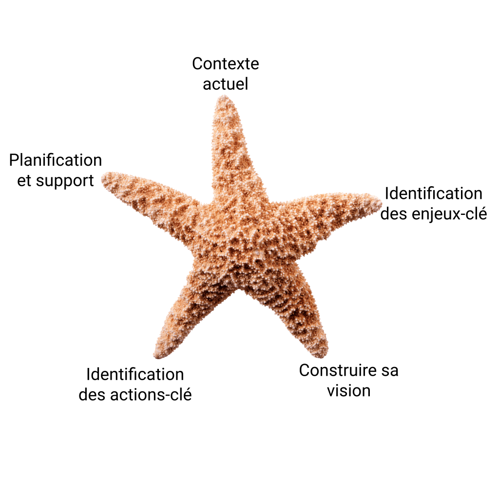 Pour vous proposer ce programme, je suis fière d’être partenaire de Starfish Partners, fondé par John Thatcher et Richard Allen. Depuis plus de trente ans, « Inspirational Leadership » a permis à de milliers de personnes de devenir des leaders centrés sur leur vision et inspirants pour leurs collaborateurs.trices et pour l’organisation. Le voyage qu’ils suivent est illustré ci-dessous :